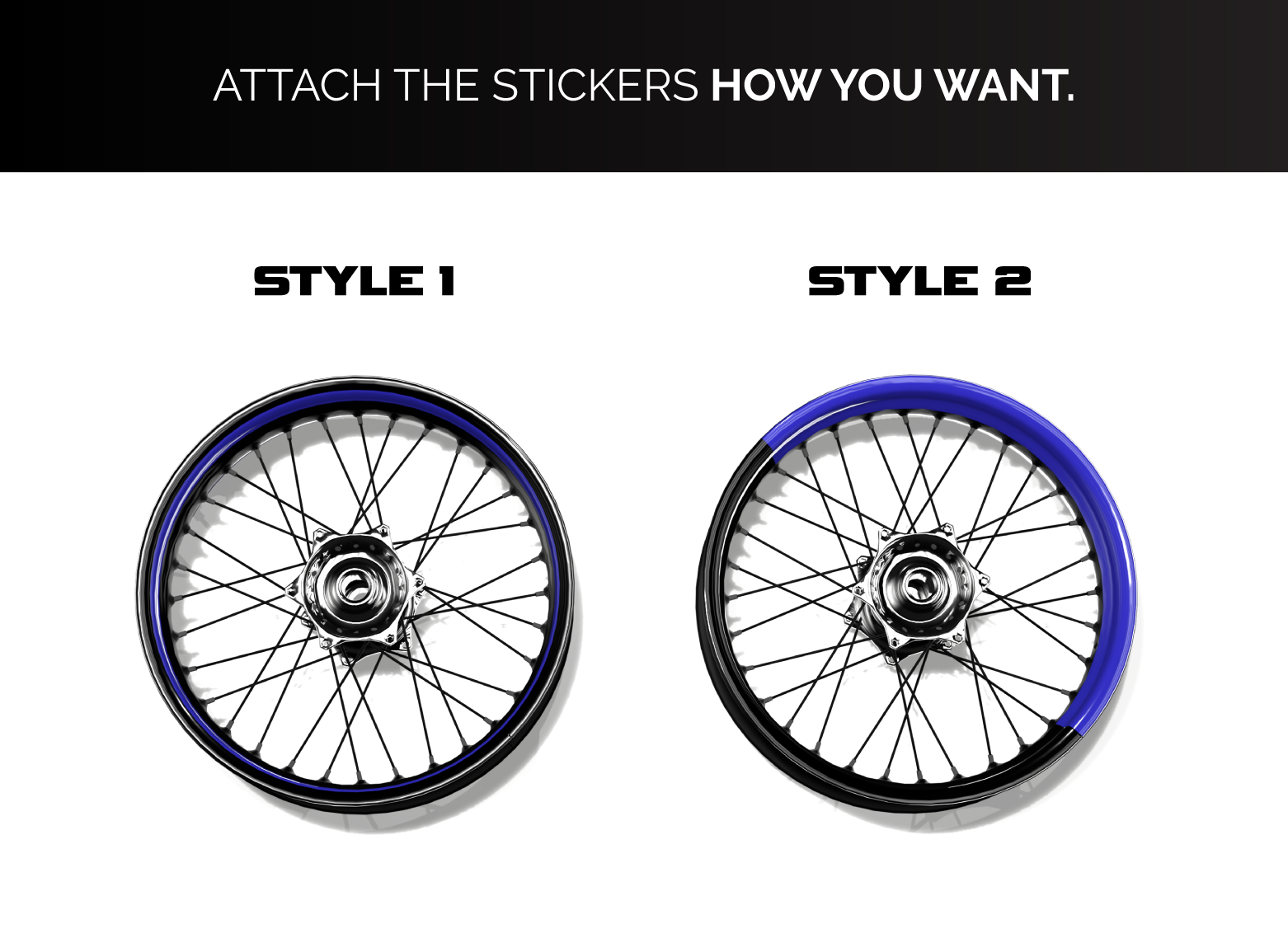 Vannetarrat on suunniteltu kahdelle vanteelle ja sisältää 40–60 erillistä tarraa — määrä ja koko vaihtelevat valitun designin mukaan. Voit valita tarroihin haluamasi värin.